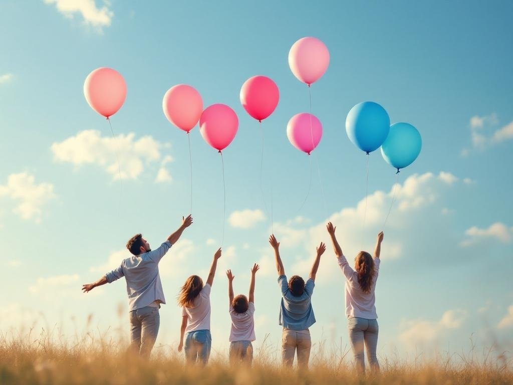 A balloon release ceremony is a fun and memorable way to reveal your baby’s gender. Imagine a beautiful day, surrounded by friends and family, all eagerly waiting for the big moment. In the image, you see a group of people joyfully holding colorful balloons, ready to let them go. The pink and blue balloons symbolize the excitement of welcoming either a baby girl or boy.