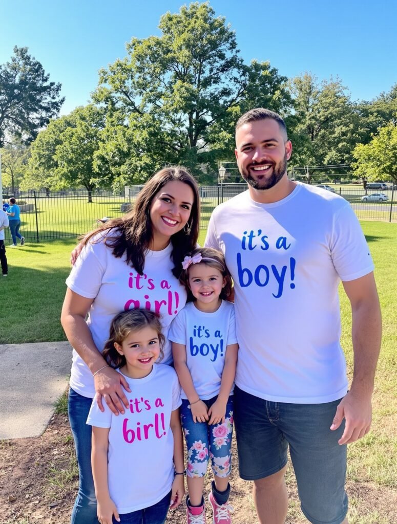 The T-shirt reveal is a fun and stylish way to share the big news about your baby’s gender. Imagine a sunny day, surrounded by friends and family, all waiting in anticipation. You and your partner wear matching shirts that reveal the gender in a playful way.